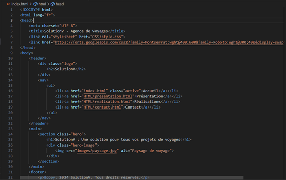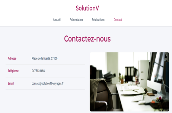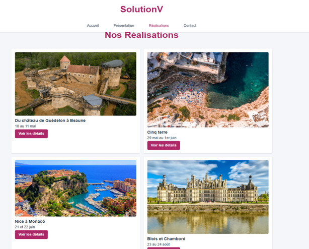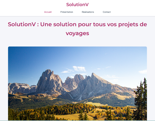 Dans ce projet, j’ai conçu une interface web pour une agence de voyage, appelée Solution V, proposant des catalogues de voyages.