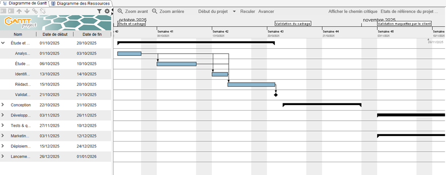 Concrètement, j’ai appris à travailler en mode projet en suivant une méthodologie. J’ai utilisé des outils comme le diagramme de Gantt et un tableau Excel avec un graphique pour visualiser les risques.