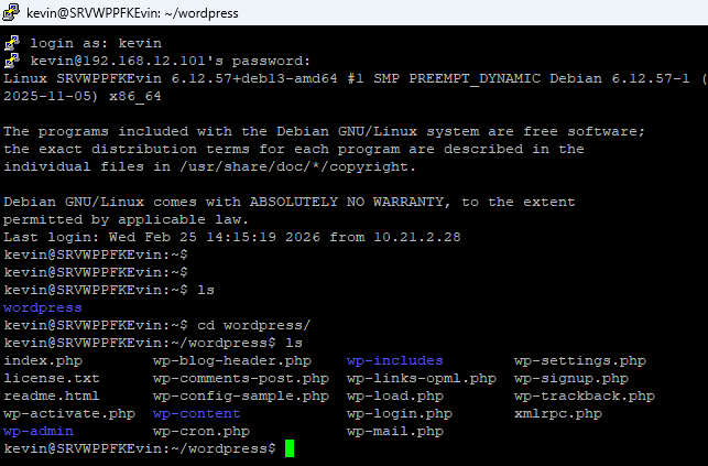 En accès à distance au serveur, sur linux j’ai installé : Apache, Php et Maria Db, des composants qui ont permis de créer et mettre en forme WordPress . Ce dernier est un langage de code, que j’ai utilisé pour donner forme à mon portfolio.